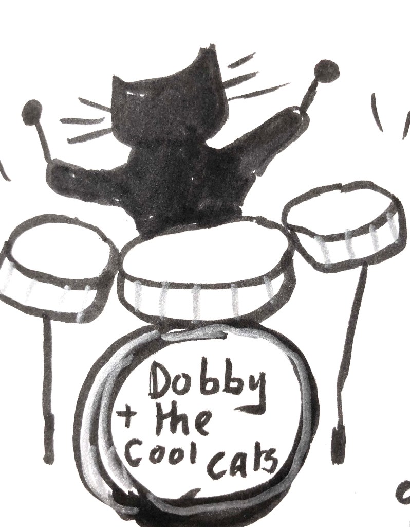 Unsuspectingly, fate brings Fitzgibbon’s drums back to him, taking residence in a barn. He picks up his drumsticks again after a decade and a half, and we feel our drummer’s magic returning. Joining a local Gloucester band, delightful eccentrics are mentioned, such as Christie Arthur and Robbie Fisher. Fitzgibbon quits his job and embraces being a full-time musician again. We are cheering at this point!