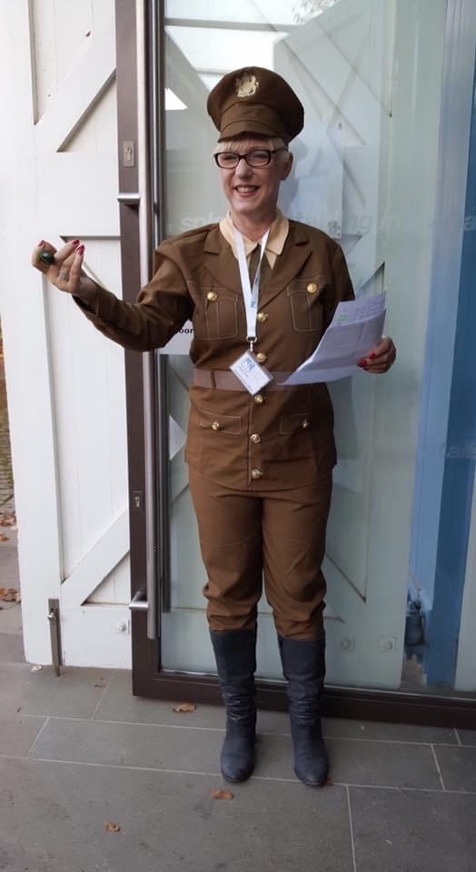 Above is the lovely Linda dressed as a Tommy, and I’m reading Jessie Pope’s The Call.