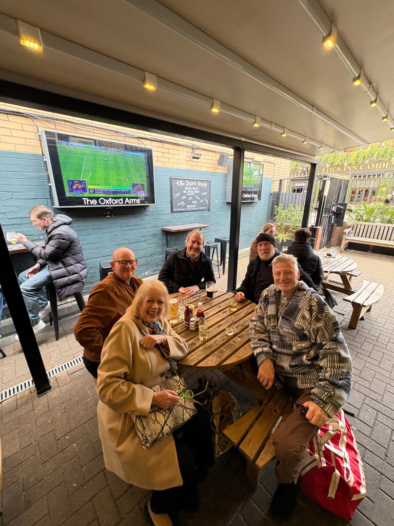 We got there early to the Oxford Arms where the Etcetera Theatre lived upstairs. Camden was vibrant and crowded while we had our – er business meeting!