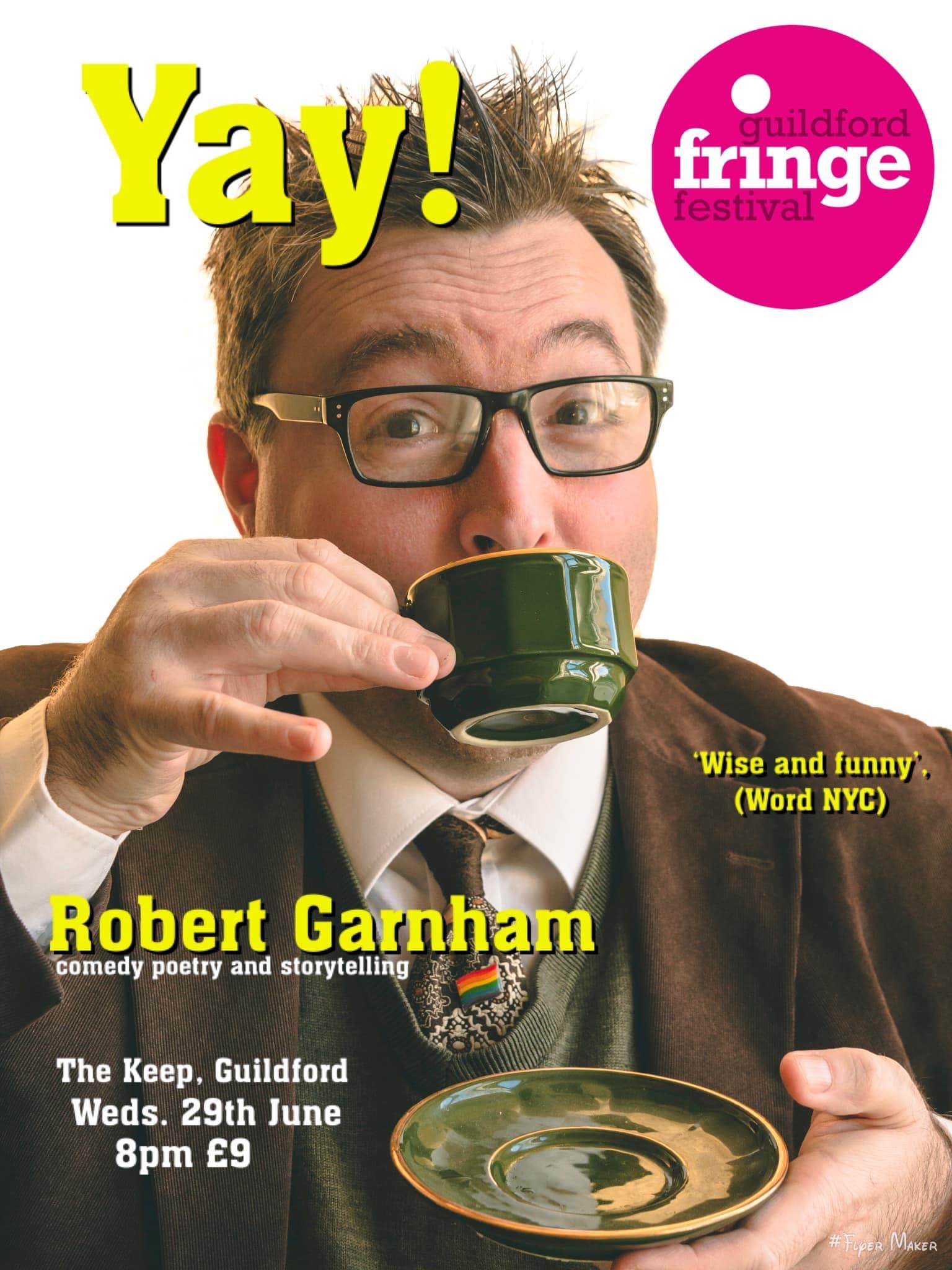 The vibrant Robert Garnham is at the Banshee Labyrinth, Edinburgh, part of the pbh Edinburgh Free Fringe from the 14th August to the 21st at 8.15. Don’t miss him. https://tickets.edfringe.com/whats-on/robert-garnham-yay