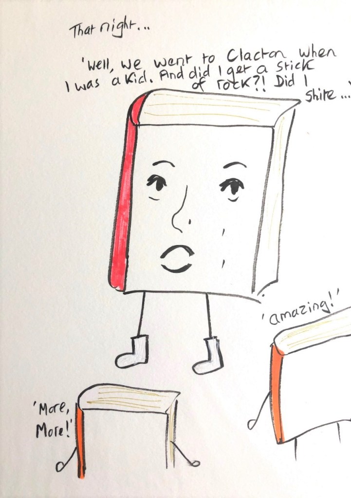 Here I am reading my poetry book to my believers behind me.. A nice quiet afternoon. Very civilised. Only one of the Homepride men coughed!